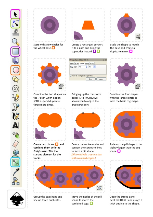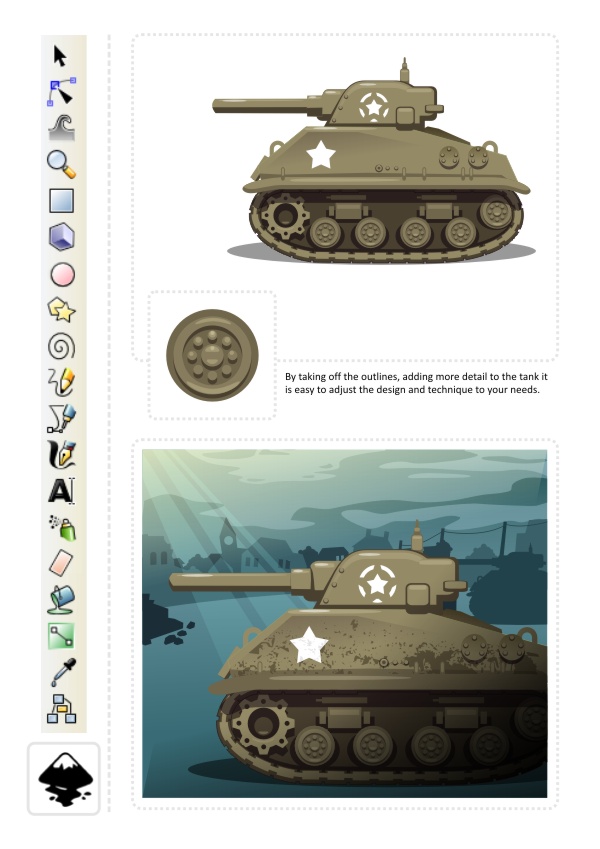 One of the key elements to speedy art creation is reusing elements you have build earlier (e.g. the tanks headlines might look really good on a vintage car as well or the cogs can be part of some clockwork).